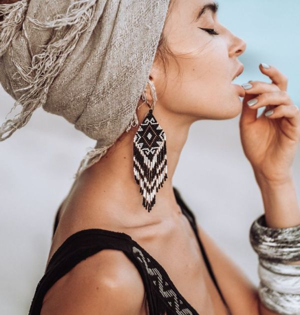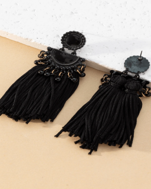 Boho Vintage Μαύρα Σκουλαρίκια με Κρόσσια