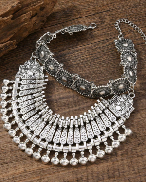 Boho Ethnic Ασημί Περιδέραιο Choker Aztec Queen