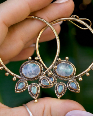 Χρυσά Boho Vintage Σκουλαρίκια Κρίκοι με Κρυστάλλους