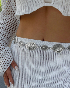 Boho Μεταλλική Ζώνη με Σκαλιστά Οβάλ Στοιχεία – 2 Χρώματα