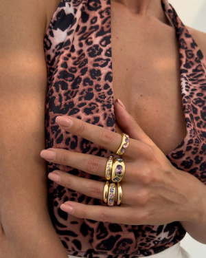 Boho Vintage Set 6 Χρυσά Minimal Δαχτυλίδια Purple Crystals