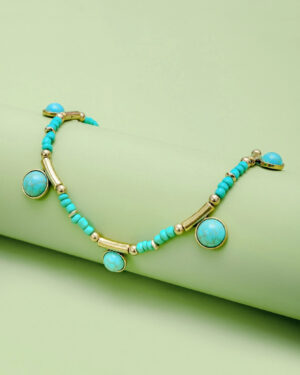 Boho Χρυσό Περιδέραιο με Τυρκουάζ Πέτρες και Χάντρες