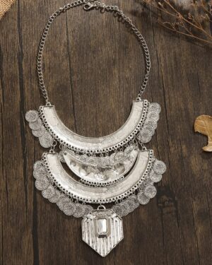 Ethnic Statement Ασημί Σκαλιστό Περιδέραιο Crystal Queen