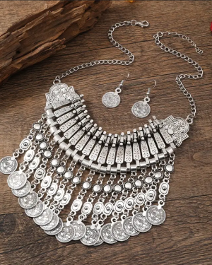 Ethnic Statement Ασημί Σκαλιστό Περιδέραιο Tribal Queen