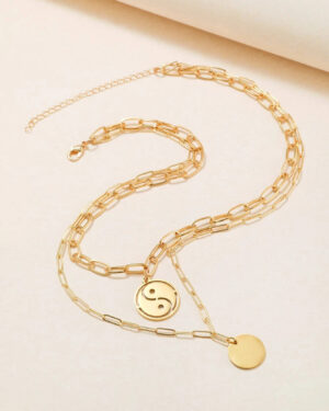 Boho Χρυσο Ατσάλινο Διπλό Κολιέ Yin Yang Discs