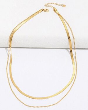 Boho Επίχρυσο 14K Ατσάλινο Διπλό Κολιέ Αλυσίδες