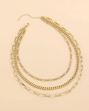 Boho Χρυσό Ατσάλινο Κολιέ με 3 Αλυσίδες Punk