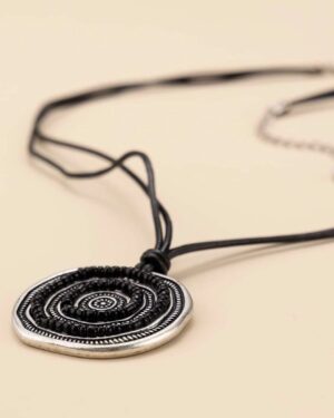Boho Μακρύ Μενταγιόν με Ασημί Σκαλιστό Δίσκο με Χάντρες