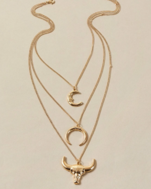 Boho Χρυσό Τριπλό Κολιέ Crescent Bull Head