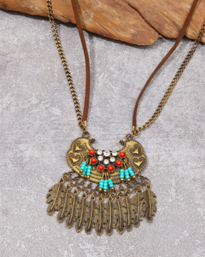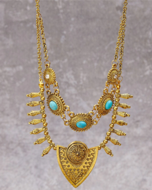 Χρυσό Antique Σκαλιστό Tribal Περιδέραιο με Τυρκουάζ