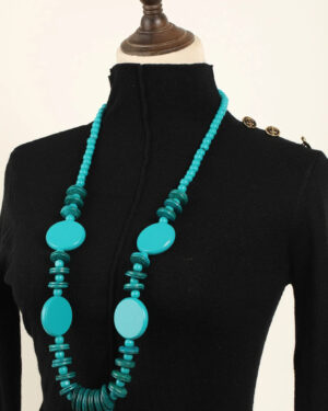 Boho Μακρύ Τυρκουάζ Κολιέ Με Ξύλινες Χάντρες & Δίσκους