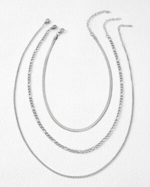 Boho Set 3 Ασημί Ατσάλινες Minimal Punk Αλυσίδες Λαιμού