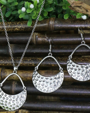 Boho Ασημί Σετ Σφυρήλατα Κολιέ & Σκουλαρίκια Crescents