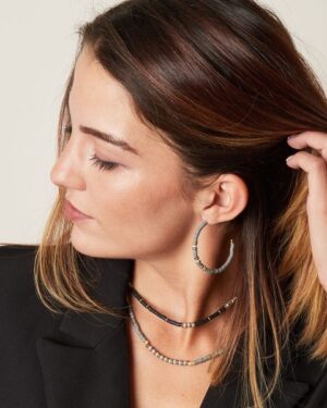 Χρυσά Σκουλαρίκια Κρίκοι με Γκρι Donuts και Χάλκινες Χάντρες