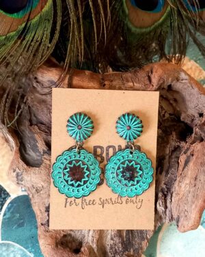 Antique Πατιναρισμένα Boho Σκουλαρίκια Tribal Flower