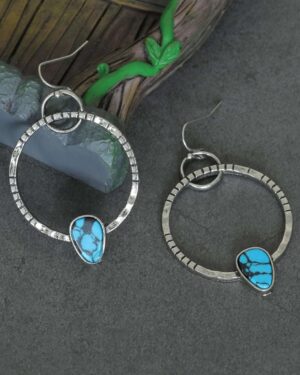 Boho Ασημί Σφυρήλατα Σκουλαρίκια με Τυρκουάζ Πέτρες