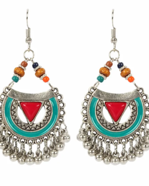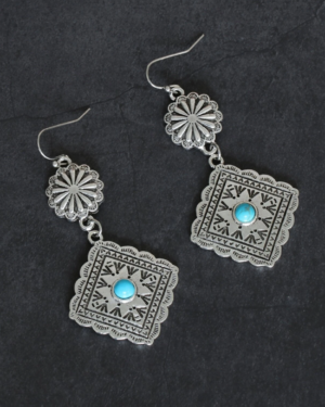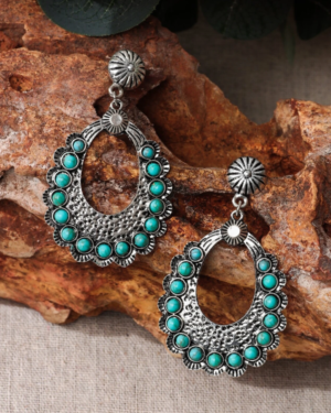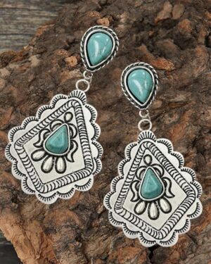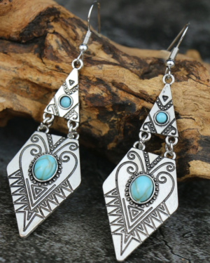 Boho Ασημί Γεωμετρικά Vintage Σκουλαρίκια με Τυρκουάζ