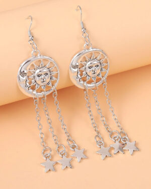 Ασημί Boho Mystic Σκαλιστά Σκουλαρίκια Sun Moon & Stars