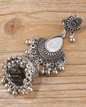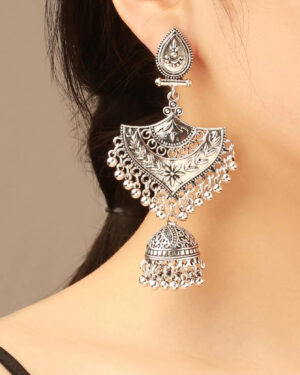 Ethnic Ασημί Σκαλιστά Σκουλαρίκια Jhumka Bell Drop