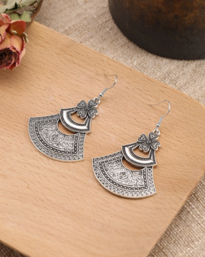 Ασημί Ethnic Διάτρητα Σκουλαρίκια με Σκαλιστά Μοτίβα