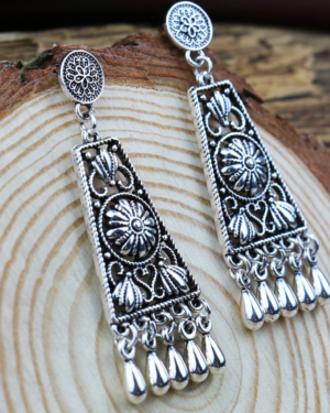 Ασημί Antique Σκαλιστά Σκουλαρίκια Indian Princess