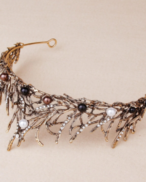 Bronze Vintage Στέμμα με Κρυστάλλους & Πέρλες