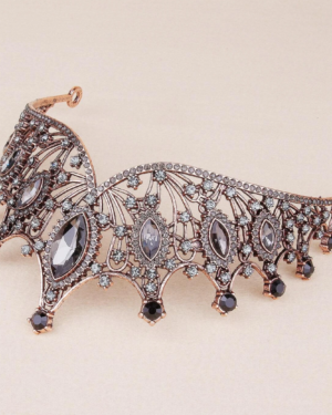 Bronze Διάτρητο Vintage Στέμμα με Κρυστάλλους Smoke