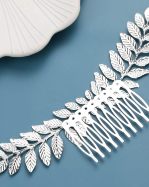Boho Αρχαιοελληνική Ασημί Χτένα με Φύλλα