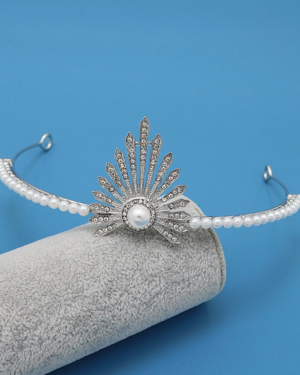 Ασημί Μεταλλικό Bridal Headpiece Vintage Pearls