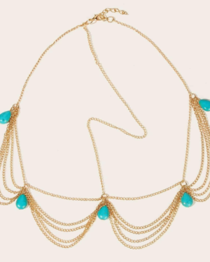 Boho Χρυσό Headpiece με Αλυσίδες και Τυρκουάζ Πέτρες