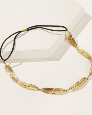 Boho Κορδέλα Μαλλιών με Χρυσά Μεταλλικά Φτερά