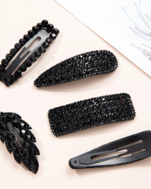 Boho Set 5 Μαύρα Κλιπ Μαλλιών με Κρυστάλλους