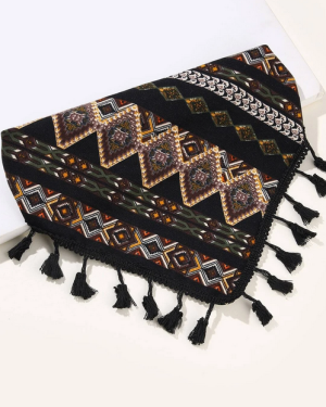 Ethnic Μπαντάνα Μαντήλι Καφέ με Φάσες και Φούντες