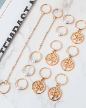 Boho 12 Χρυσοί Κρίκοι Μαλλιών Pearl Chain Trees
