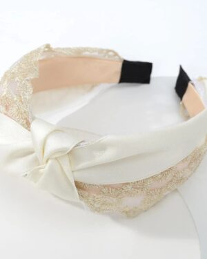 Boho Romantic Bow Scrunchie Κεντημένο Τούλι με Πέρλες