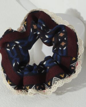 Boho Aztec Ροζ Μπορντό Scrunchie με Ζαχαρί Lasercut Τρέσα
