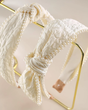 Λευκή Jacquard Στέκα με Πέρλες – 2 Σχέδια