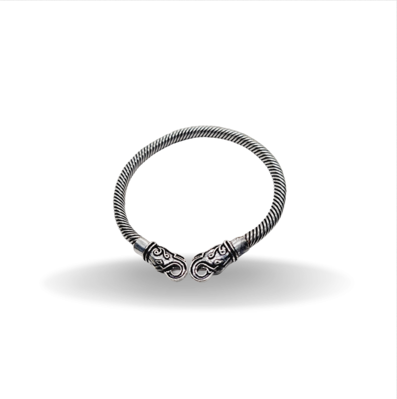 Ασημί ethnic boho χειροπέδα μασίφ, με σκαλιστά στριφτά σχέδια σε όλη την επιφάνεια, και περίτεχνα tribal μοτίφ στα άκρα.