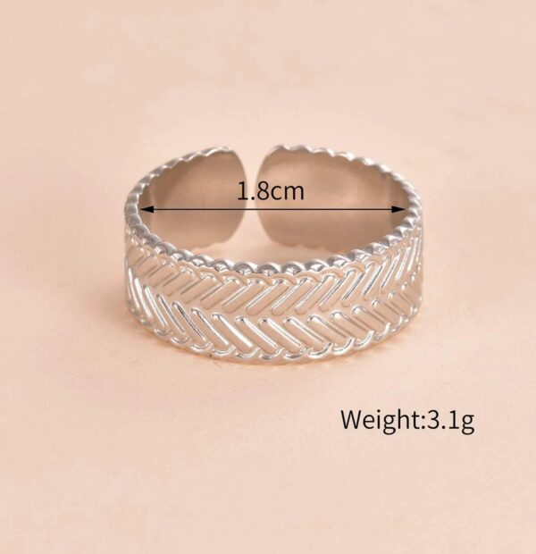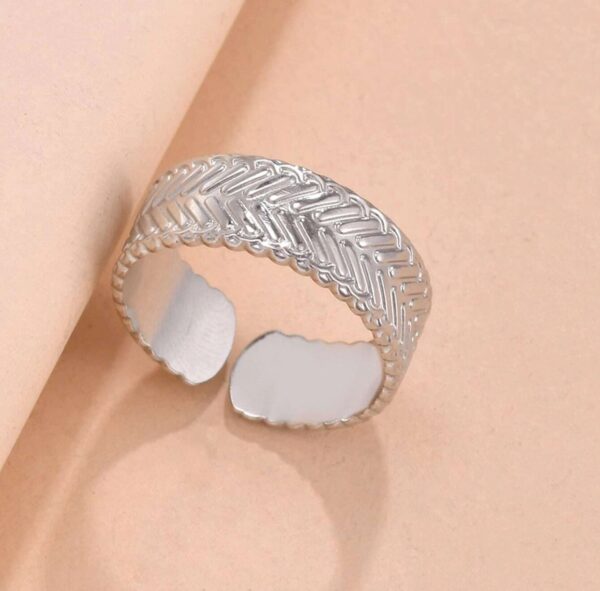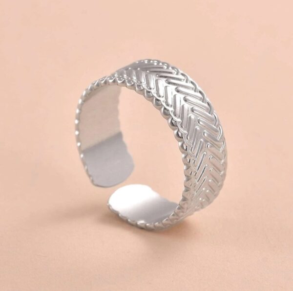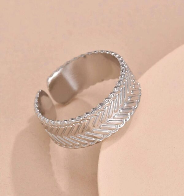 Ασημί boho minimal δαχτυλίδι από ανοξείδωτο ατσάλι με ανάγλυφη επιφάνεια.