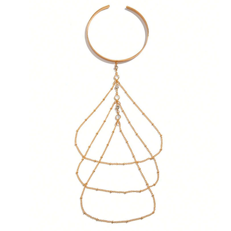 Boho βραχιόλι μπράτσου σε στυλ χειροπέδας, με αλυσίδες και μικρά διάφανα ζιργκόν,