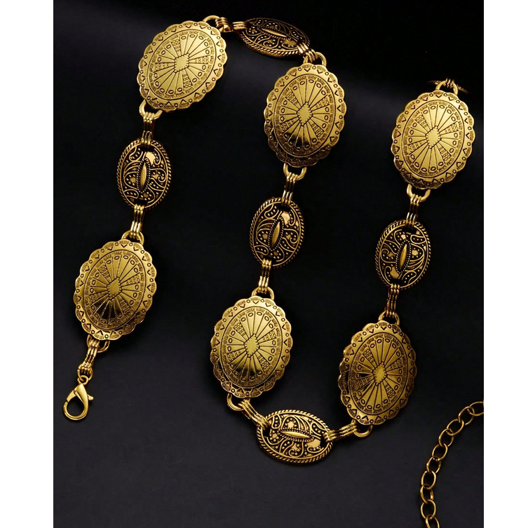 Boho Μεταλλική Ζώνη με Σκαλιστά Οβάλ Στοιχεία – 2 Χρώματα