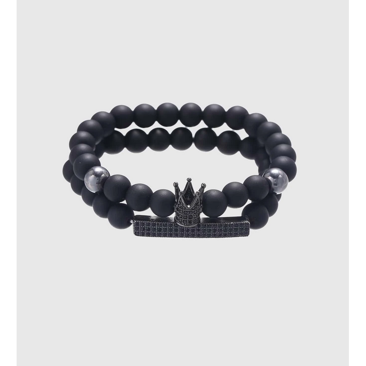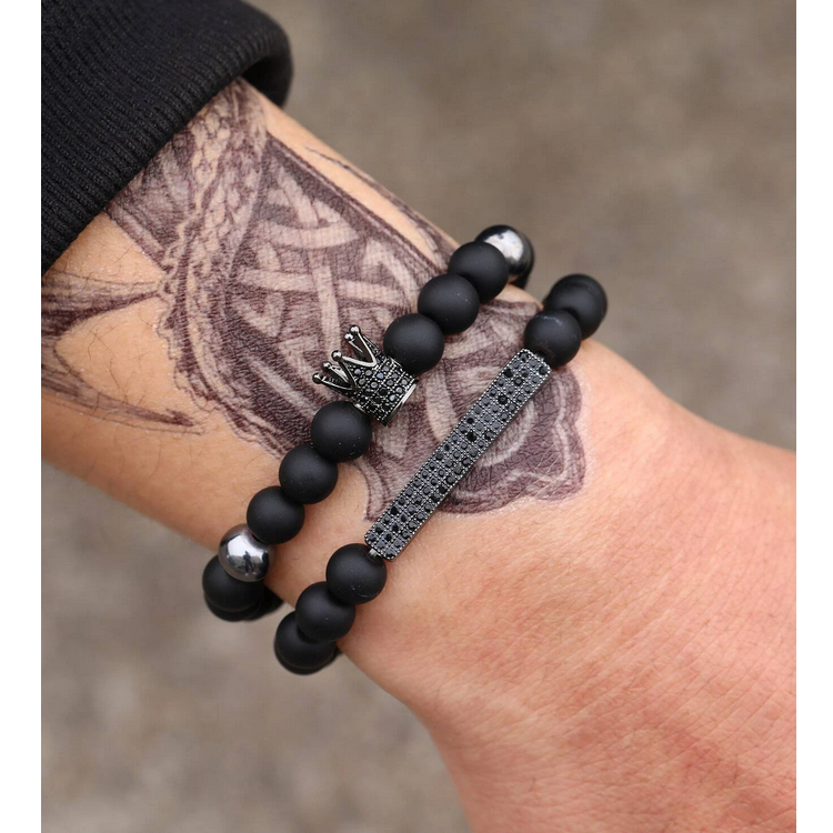 Boho Men Set Βραχιόλια Crown Με Μαύρες Ορυκτές Πέτρες