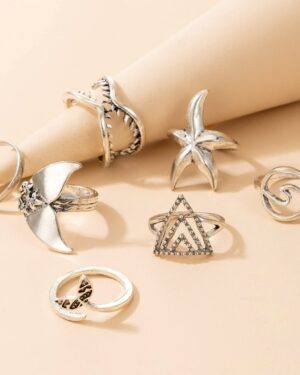 Boho Ring Set 15 Ασημί Δαχτυλίδια Crystal Love
