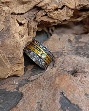 Ασημί Boho Ανάγλυφο Δαχτυλίδι με Τρεις Χρυσές Σειρές