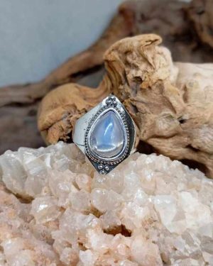 Ασημί Boho Δαχτυλίδι Faux Opal Drop Stone