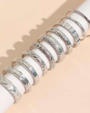 Boho Set 10 Ασημί Σκαλιστά Δαχτυλίδια Βέρες