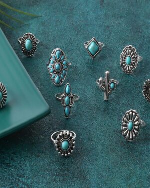 Boho Ring Set 10 Σκαλιστά Ασημί Δαχτυλίδια Discs Flowers