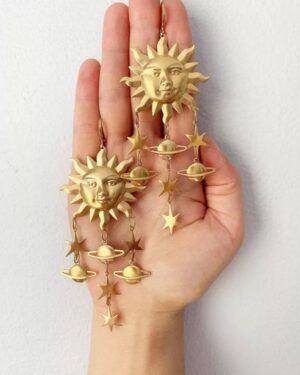 Boho Mystic Χρυσά Σκουλαρίκια Sun Stars & Planets