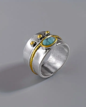 Boho Δίχρωμο Δαχτυλίδι με Τυρκουάζ Πέτρα