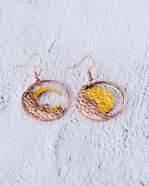 Boho Mystic Δίχρωμα Σκουλαρίκια Κρίκοι Full Moon & Crescent